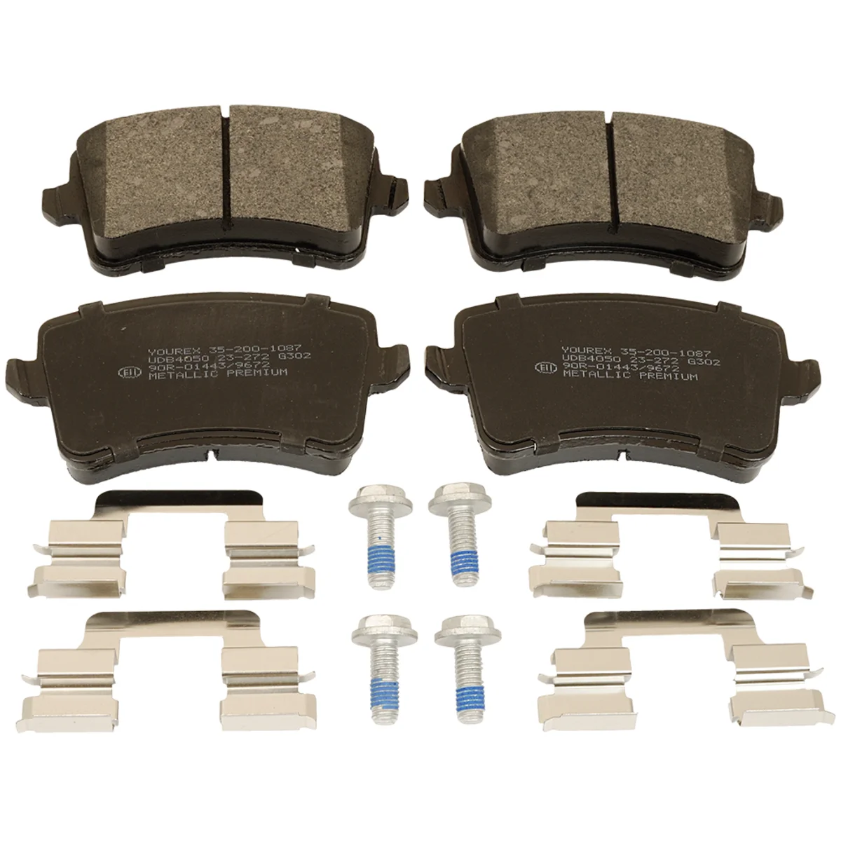 Bremseklosssett, Bakaksel Metallic Premium, uten integrert slitasjesensor Bredde 116.4mm, Høyde 58.5mm, Tykkelse 17.5mm. Med tilbehør og skruer.
