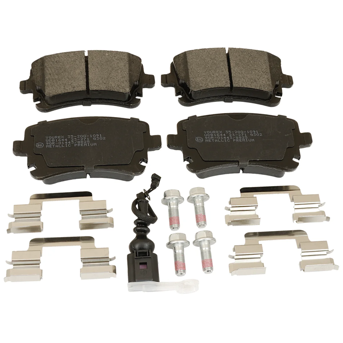 Bremseklossett, Bakaksel Metallic Premium, Med integrert slitesensor Bredde 116,2mm, Høyde 59mm, Tykkelse 17,5mm. Med tilbehør og skruer. Bremseklossett foran = 35-200-1036