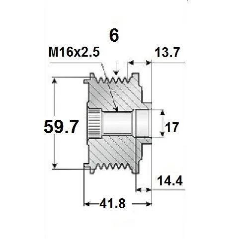 Frigångsreimhjul 17x64x59,67, 6spår, FW 17 x 64 x 59,67 mm