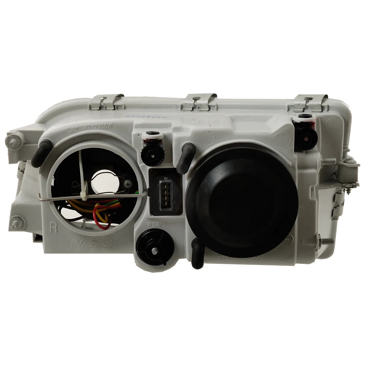 Hovedlykt lys, passerer Volvo uten innslagsrelé for lysviddsregulering. "E" - merket. Husets farge: sølv. Ramfarge: krom, høyre H7. Obs! Til 07-2000! På grunn av ulike varianter, sammenlign originalnummer før bestilling. Har 4 pin hovedkontakt.