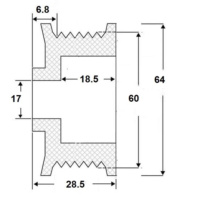 Reimhjul 17x60x29, Hit. 6 spor L-29 mm, YD-60 mm, ID-17 mm